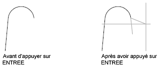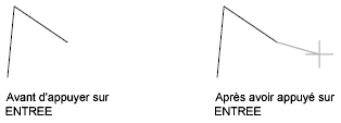 Spécifiez le premier point: Spécifiez un point ou appuyez sur ENTREE pour continuer depuis la dernière ligne ou le dernier arc dessiné.