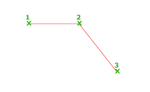 L'exemple suivant montre le dessin de deux faces d'un triangle. Le premier côté est représenté par une ligne partant des coordonnées absolues -2,1 et dont l'extrémité se situe au point 5 dans la direction de X et au point 0 dans la direction de Y. La deuxième face est représentée par une ligne partant de l'extrémité de la première ligne, située au point 0 dans la direction de X et au point 3 dans la direction de Y. Le segment de la dernière ligne utilise des coordonnées relatives pour revenir au point de départ.