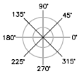Par défaut, les angles croissent dans le sens trigonométrique et décroissent dans le sens horaire. Pour déterminer le sens horaire, entrez une valeur négative pour l'angle. Par exemple, en tapant 1<315 vous donnez le même emplacement au point qu'en entrant 1<-45. Vous pouvez modifier les conventions de saisie des angles pour le dessin en cours à l'aide de la commande UNITES.