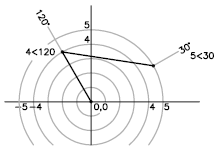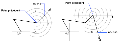 Vous pouvez utiliser des coordonnées polaires (distance et angle) absolues ou relatives pour définir la position de points quand vous créez des objets.