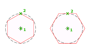 Vous pouvez spécifier les divers paramètres d'un polygone, notamment le nombre de côtés. La différence entre les options Inscrit et Circonscrit est présentée.